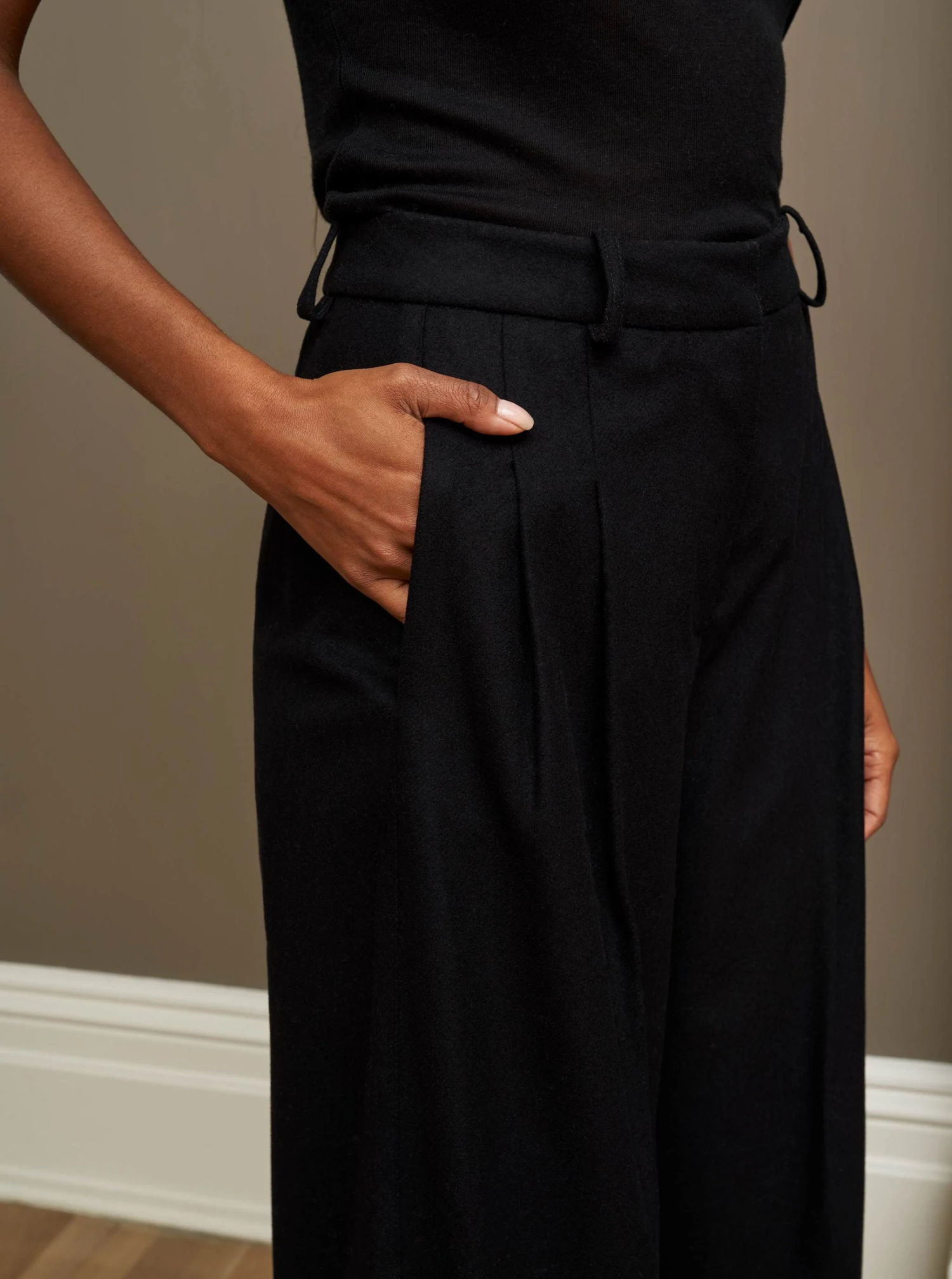 Inspired by La Bande member Selby Drummond, this black, high waisted pleated trouser is elevated with a hint of sport. Feel free to run away with them in a flat boot or simply strut into a room when you wear them with heels. Just like Selby, there is nothing this pant can’t do.