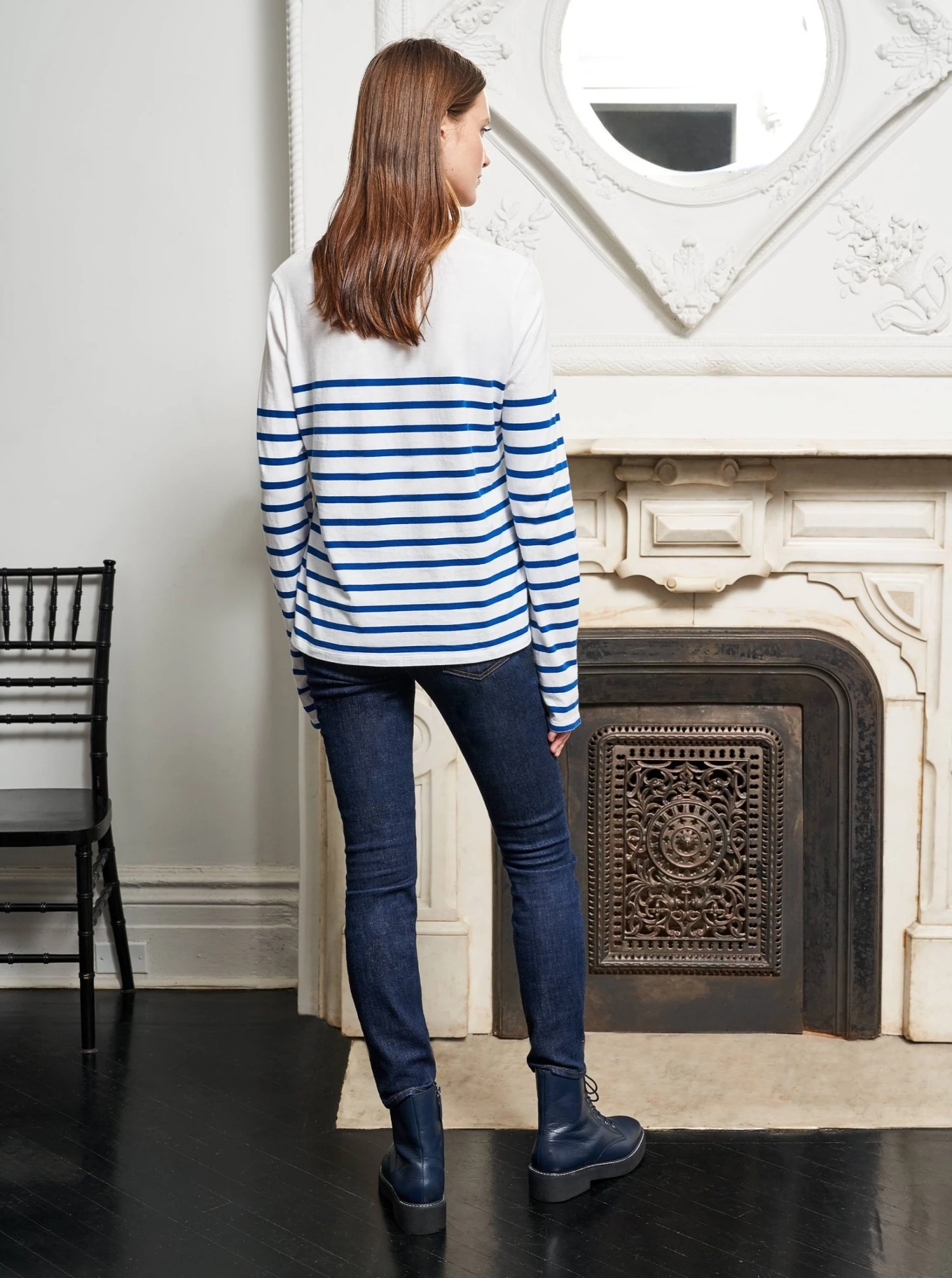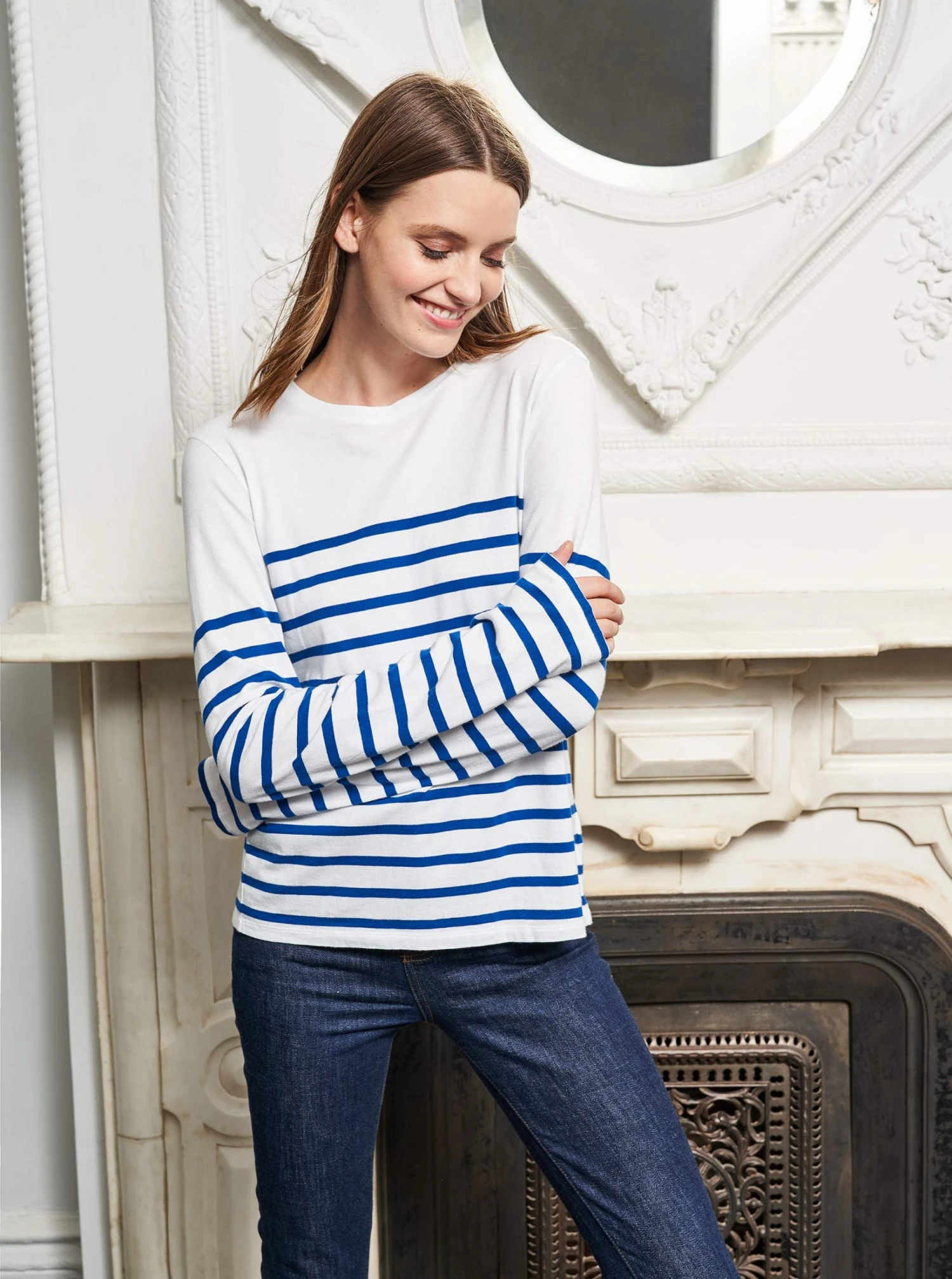 Our classic long-sleeve tee – a wink at iconic French style – with yarn-dyed bright blue stripes in lightweight cotton.
