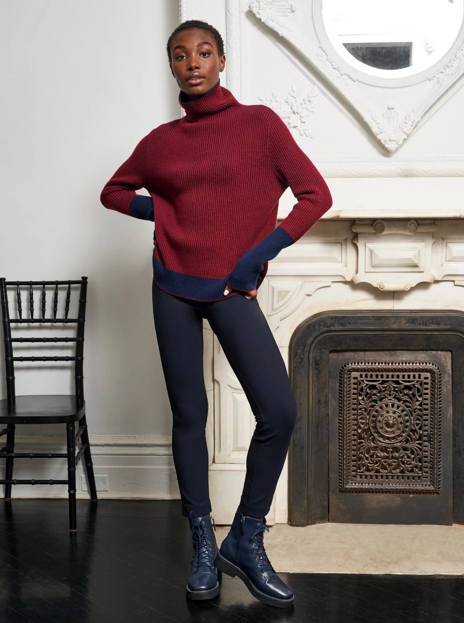 This will be your favorite turtleneck to bundle up in come winter. Its baby-soft burgundy cashmere and subtle navy detailing sets it apart from the pack.