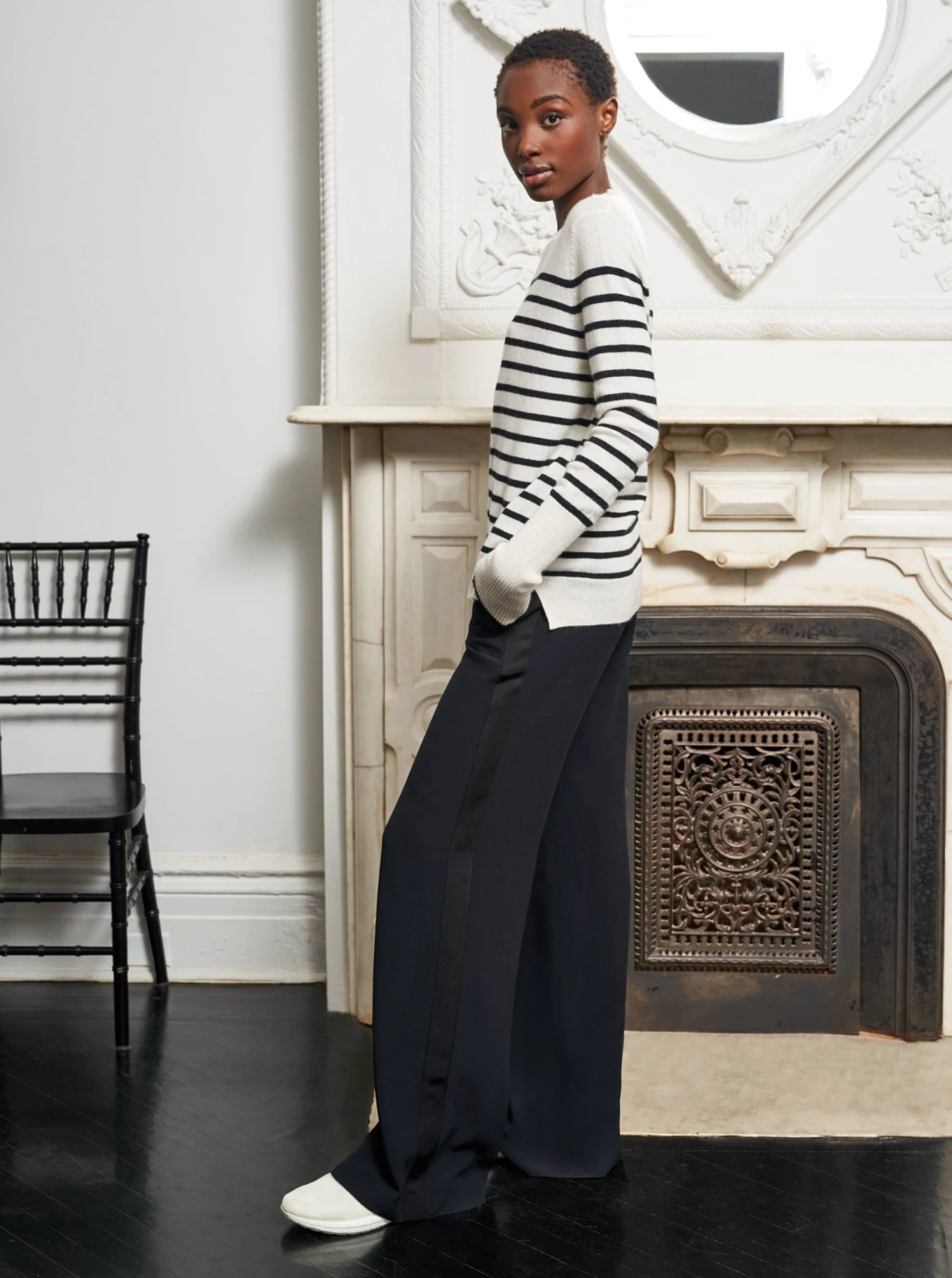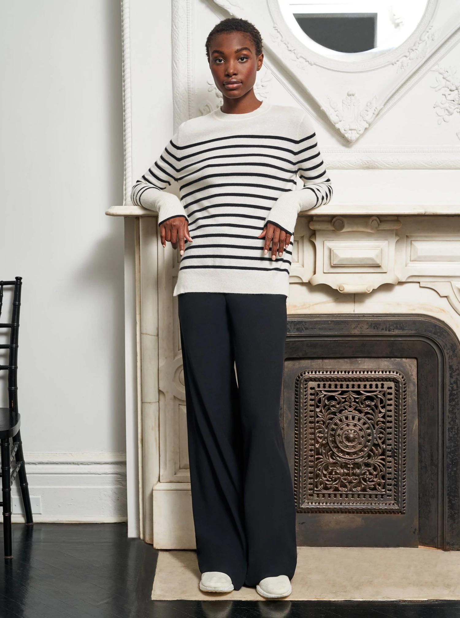 Anytime. Anywhere. Anyplace. We combined our signature AAA Sweater with our top selling Lean Lines Tee to bring you the ultimate year round essential. You know that piece, the one you hope no one will notice you’ve worn three days in a row? This is that sweater, in cream and black cashmere. You can thank us later.