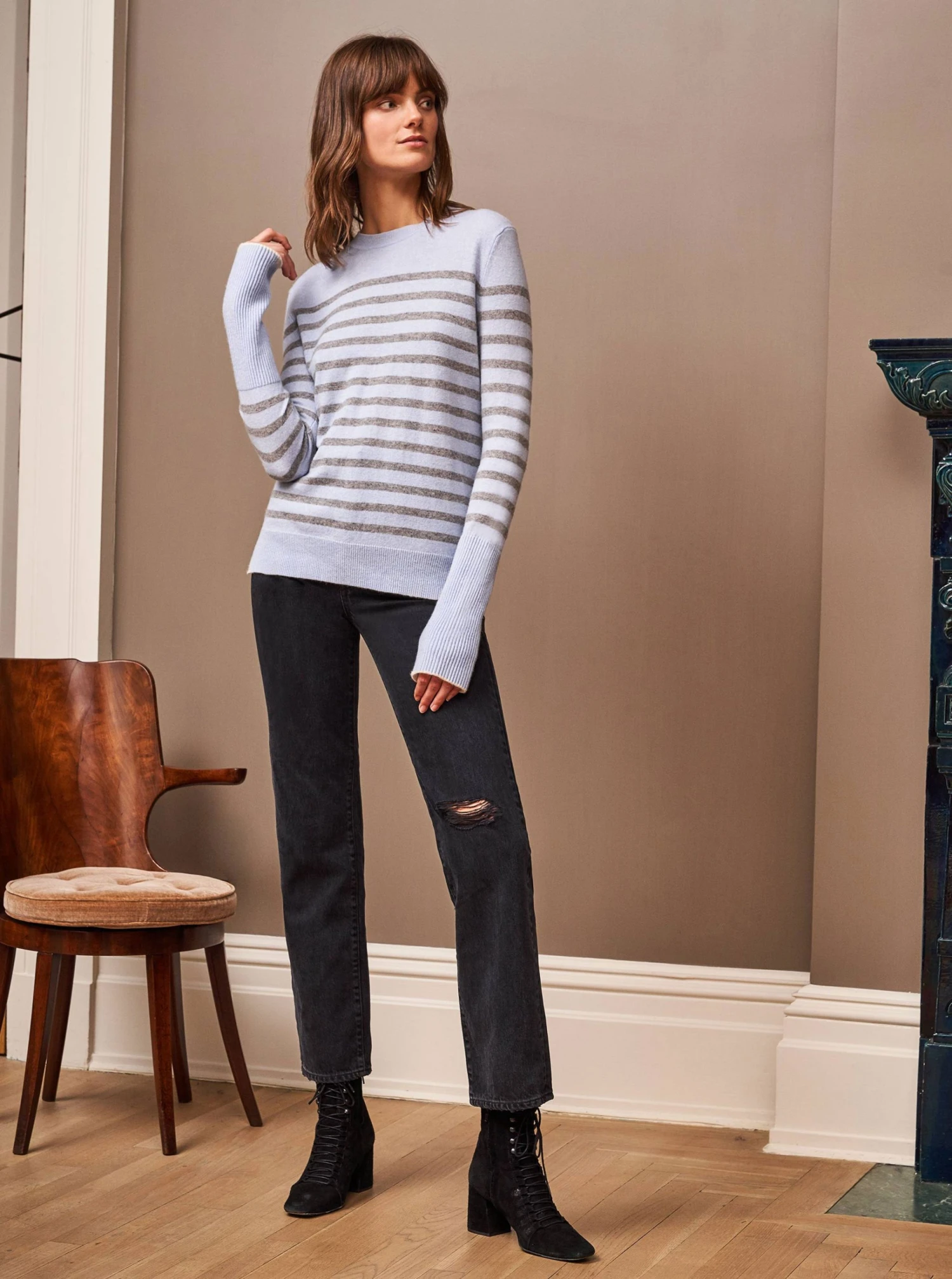 Anytime. Anywhere. Anyplace. We combined our signature AAA Sweater with our top selling Lean Lines Tee to bring you the ultimate year round essential. You know that piece, the one you hope no one will notice you’ve worn three days in a row? This is that sweater in pale blue and grey cashmere. You can thank us later.