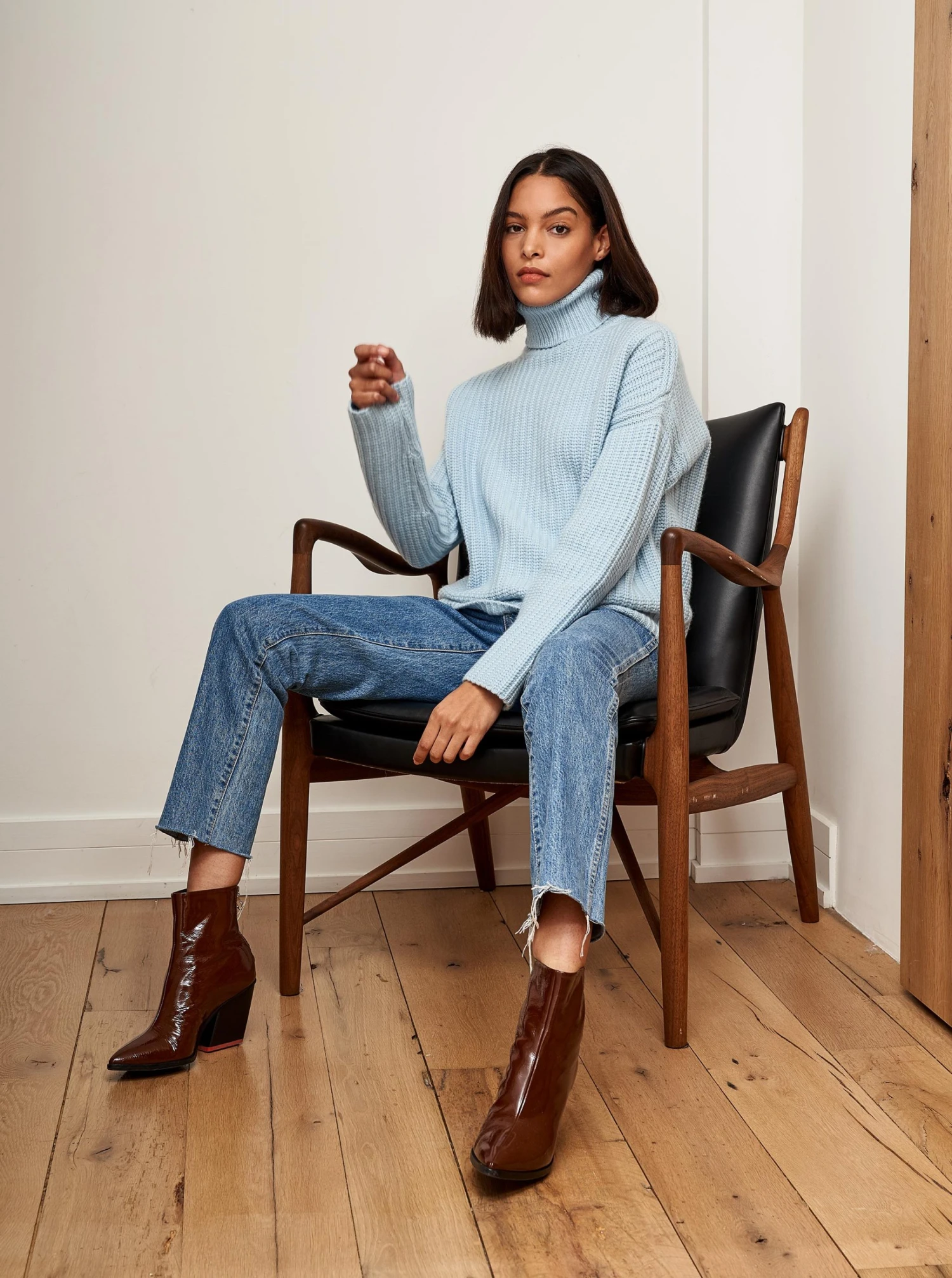 This is it. This is your everyday, never-without, take-with-you-everywhere sweater that will always have your back. Deliciously ribbed cashmere in a sumptuous foldover turtleneck means you need one in every color for tous les jours.