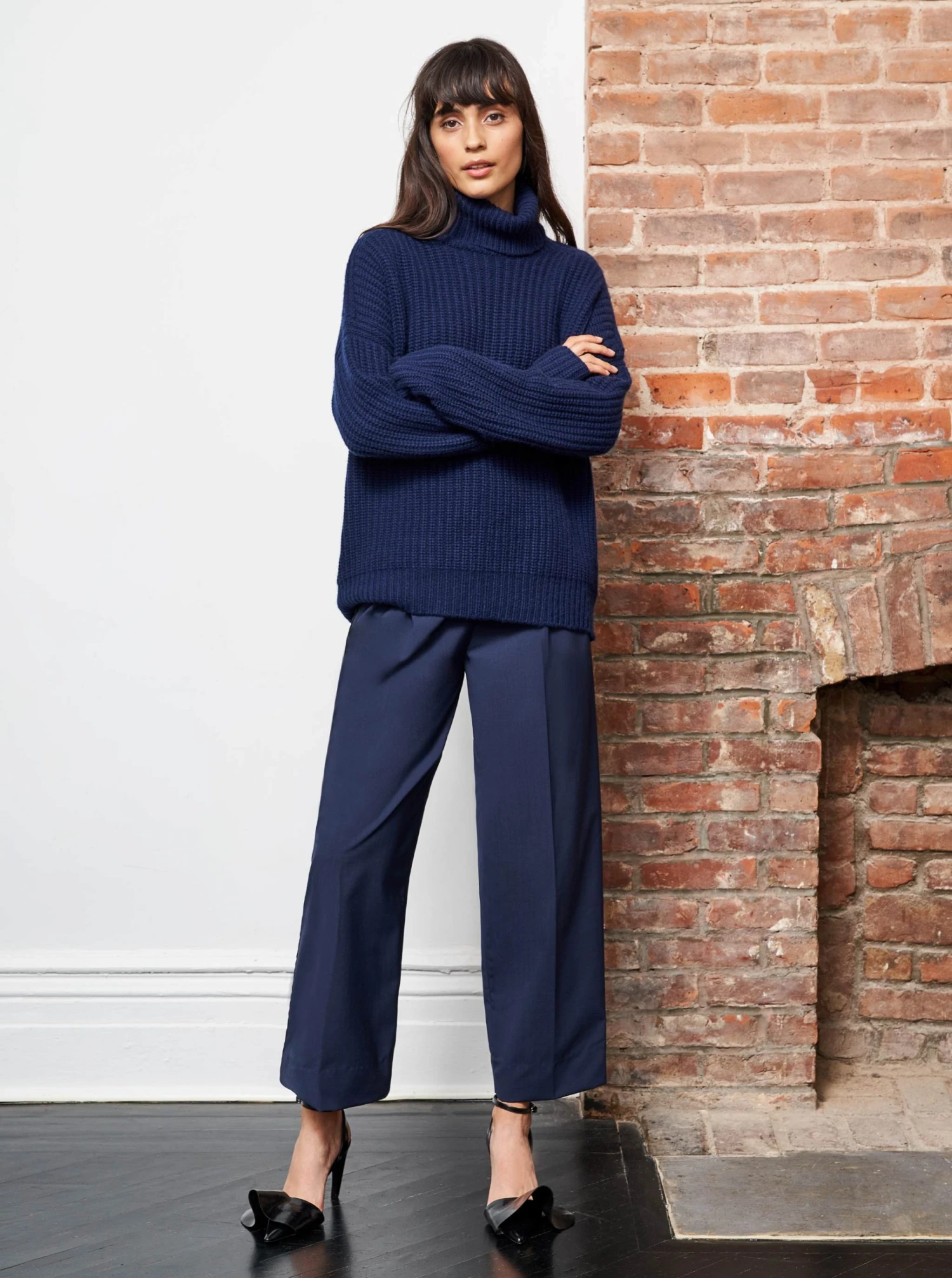 This is it. This is your everyday, never-without, take-with-you-everywhere sweater that will always have your back. Deliciously ribbed cashmere in a sumptuous foldover turtleneck means you need one in every color for tous les jours.