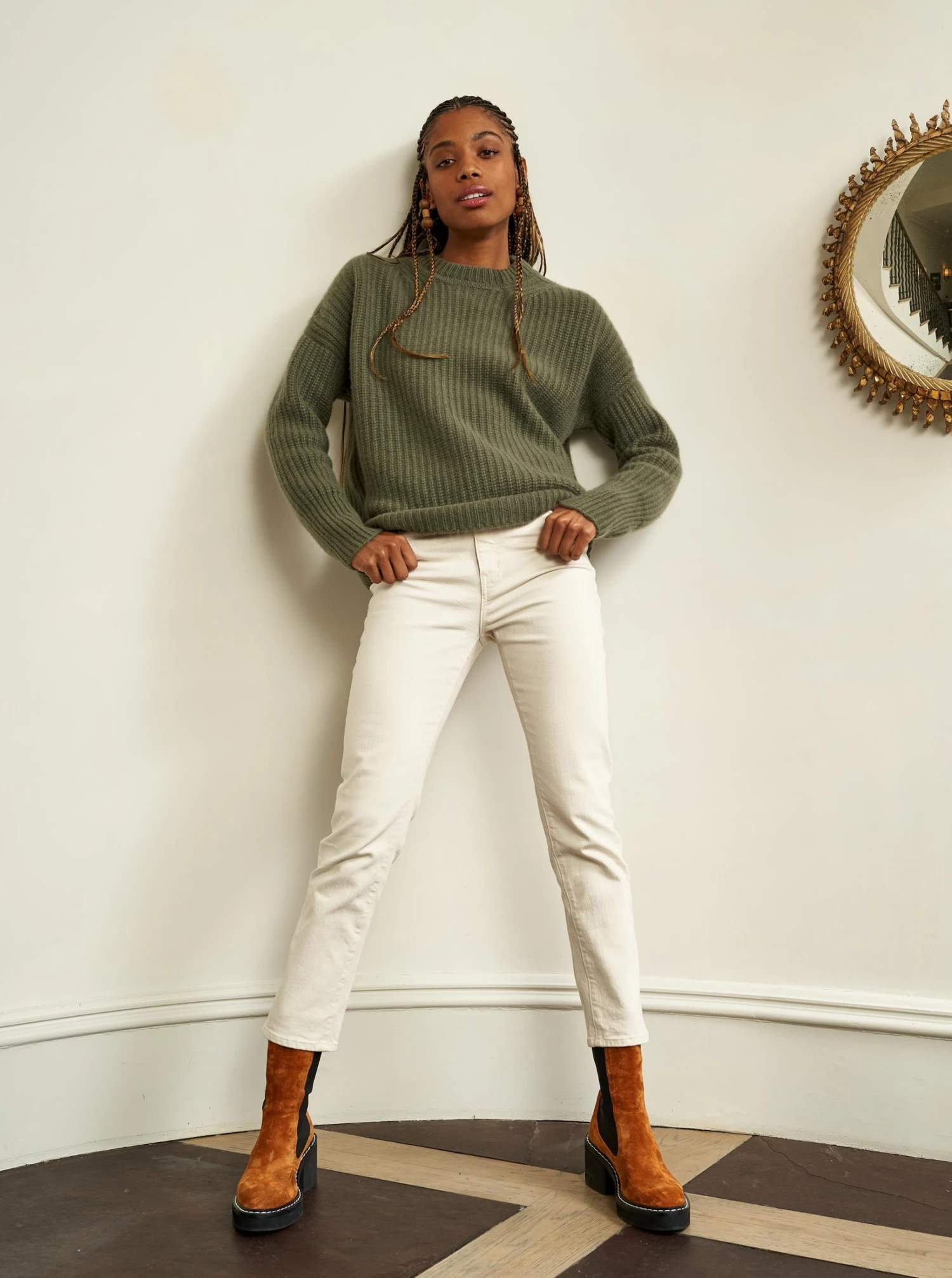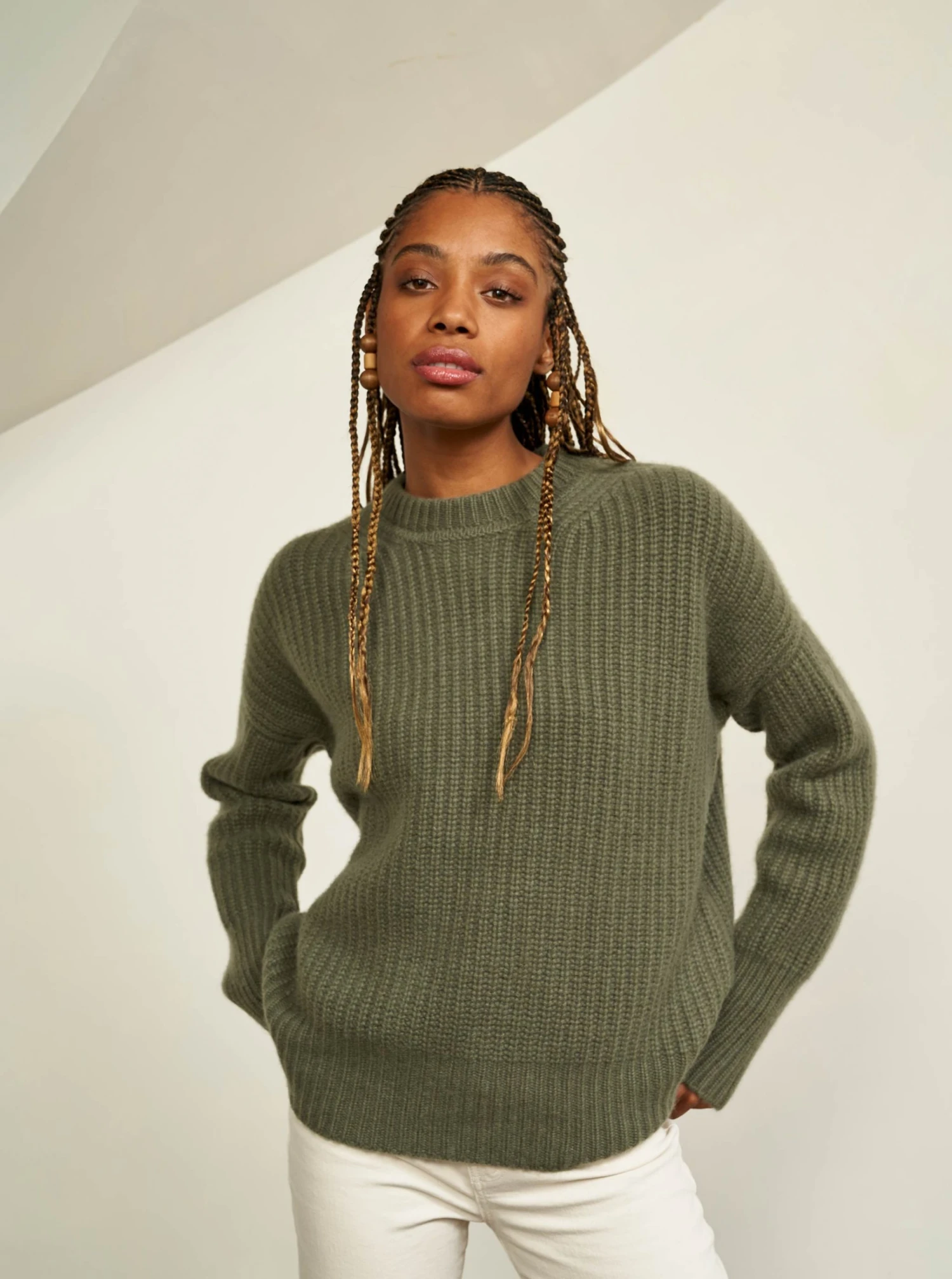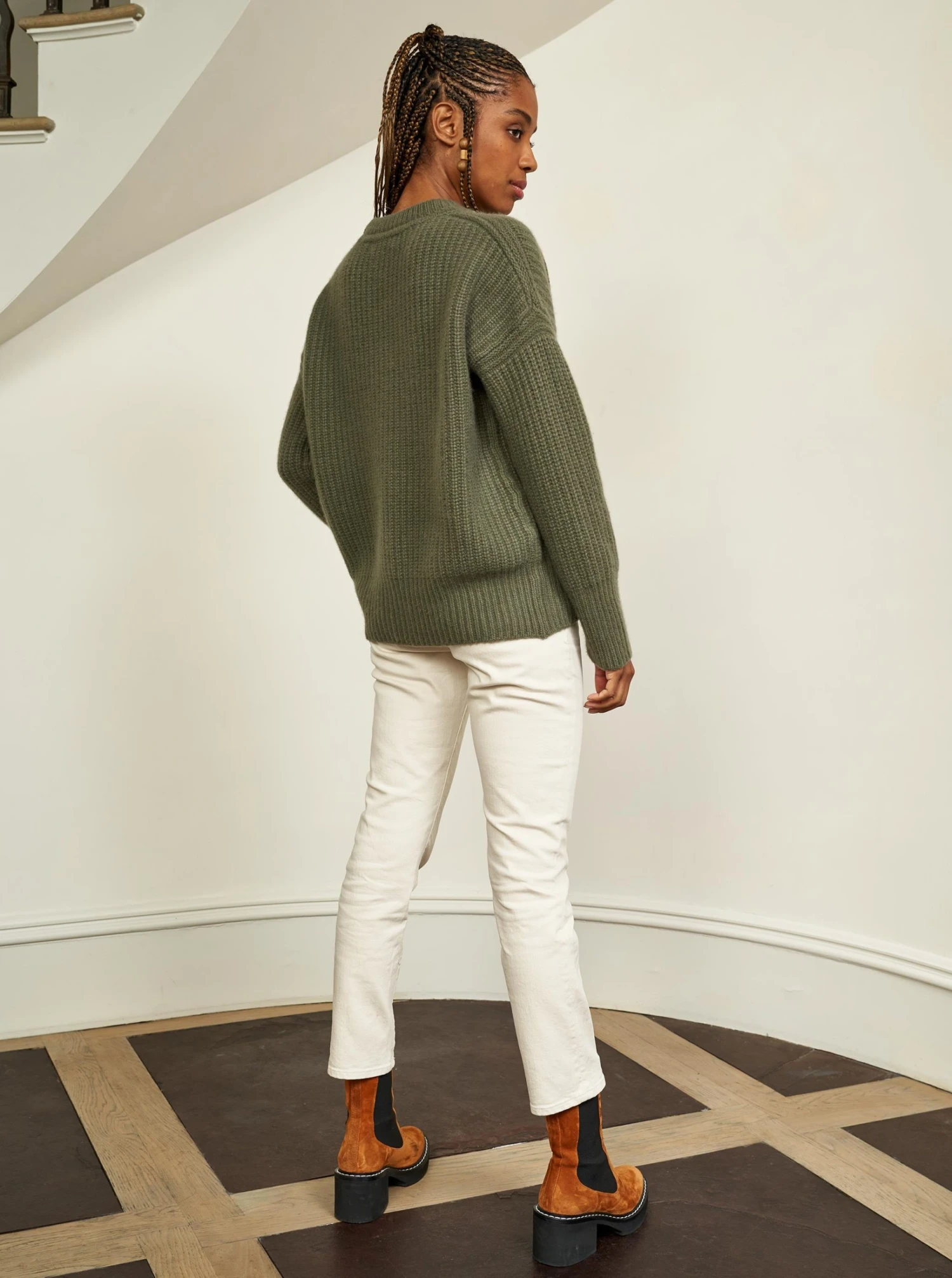 This is it. This is your everyday, never-without, take-with-you-everywhere sweater that will always have your back. Deliciously ribbed cashmere in a loose crewneck silhouette means you need one in every color for tous les jours.