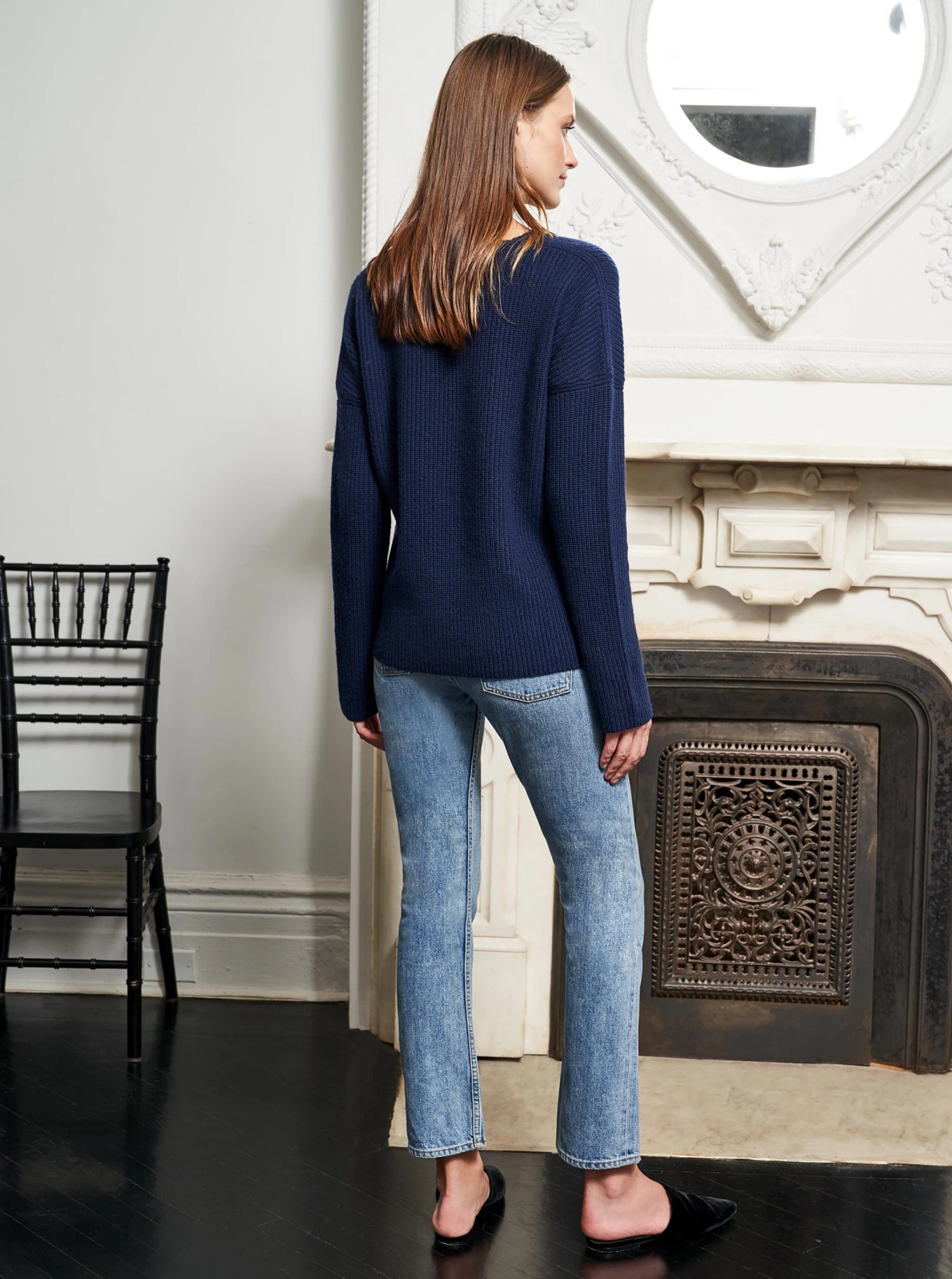 This is it. This is your everyday, never-without, take-with-you-everywhere sweater that will always have your back. Deliciously ribbed cashmere in an easy v neck silhouette means you need one in every color for tous les jours.