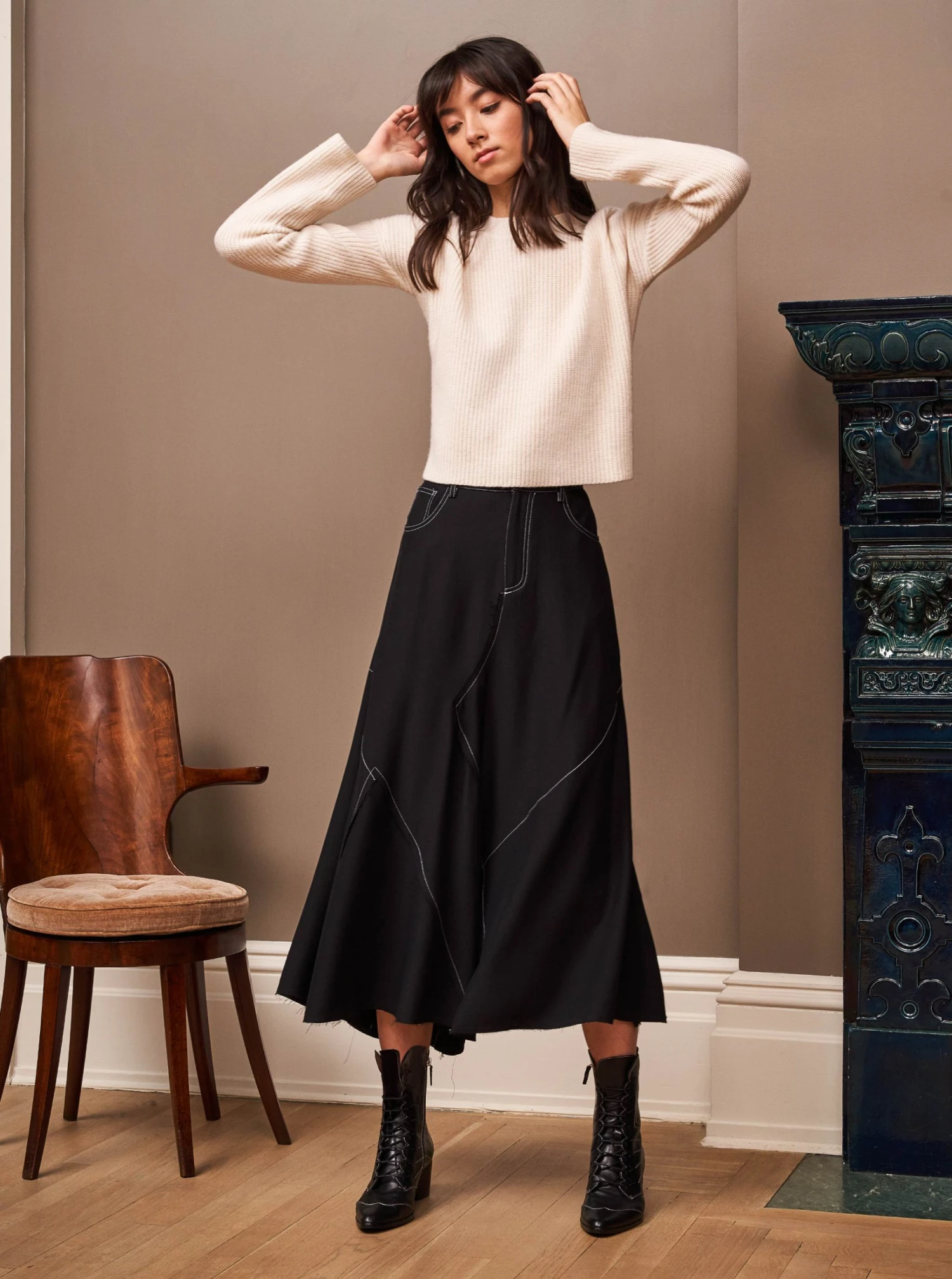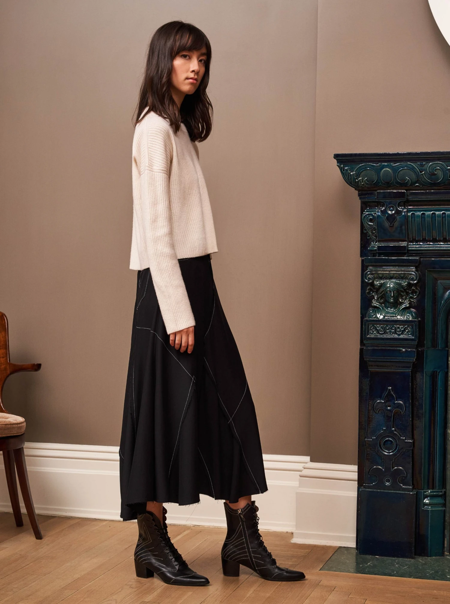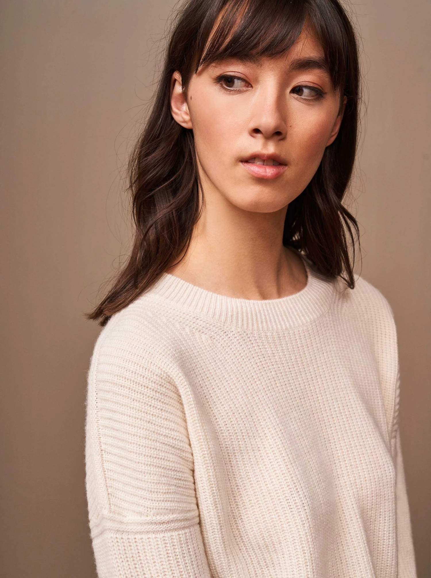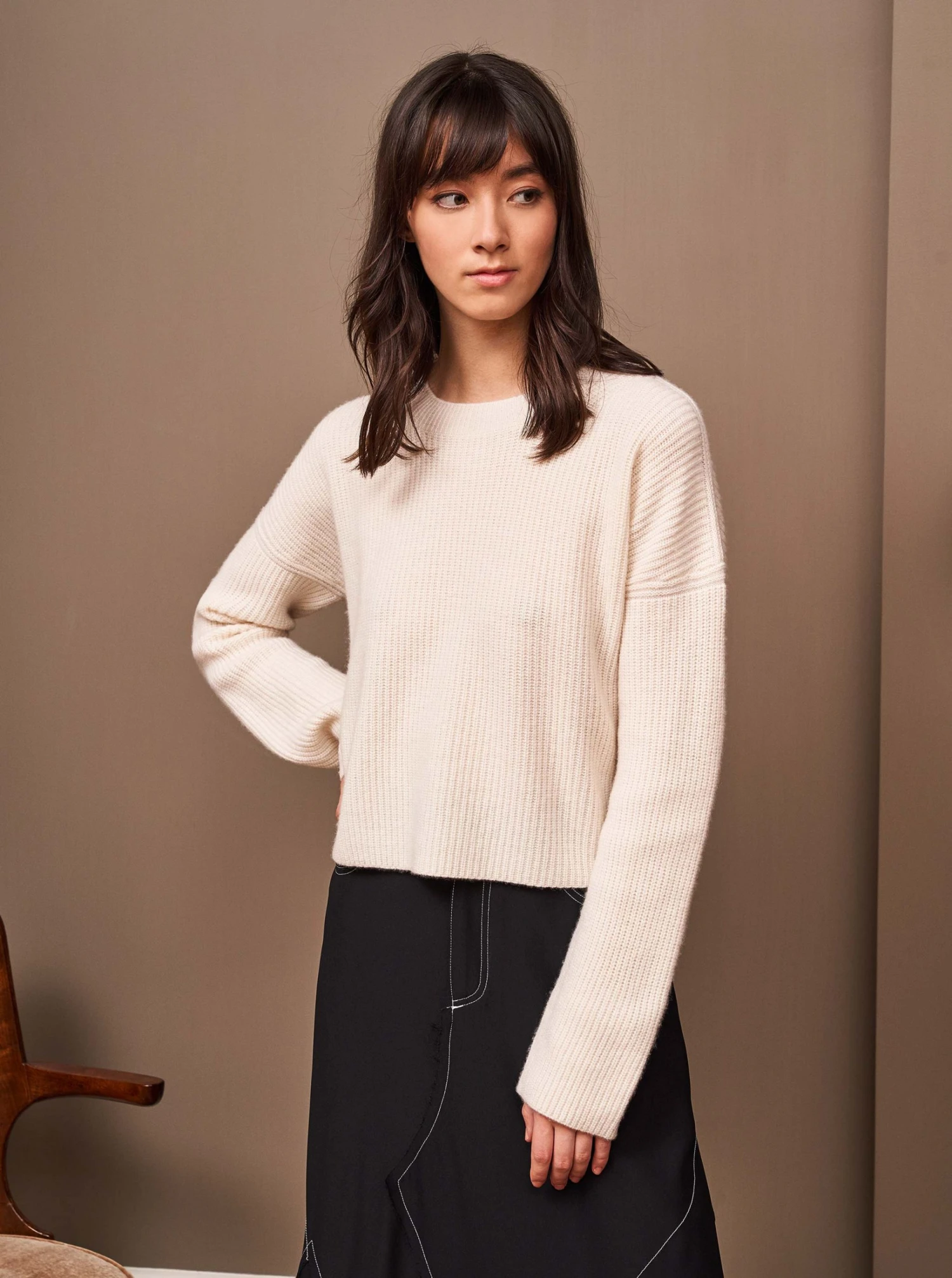 This is it. This is your everyday, never-without, take-with-you-everywhere sweater that will always have your back. Deliciously ribbed cashmere in a loose crewneck and slightly cropped silhouette means you need one in every color for tous les jours.