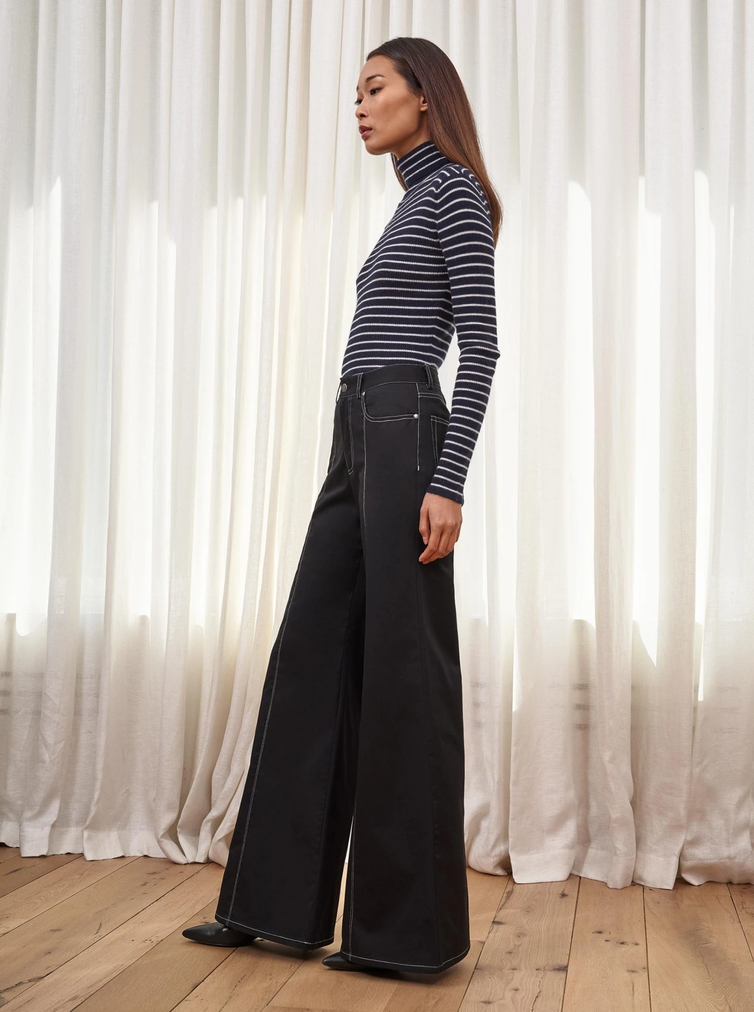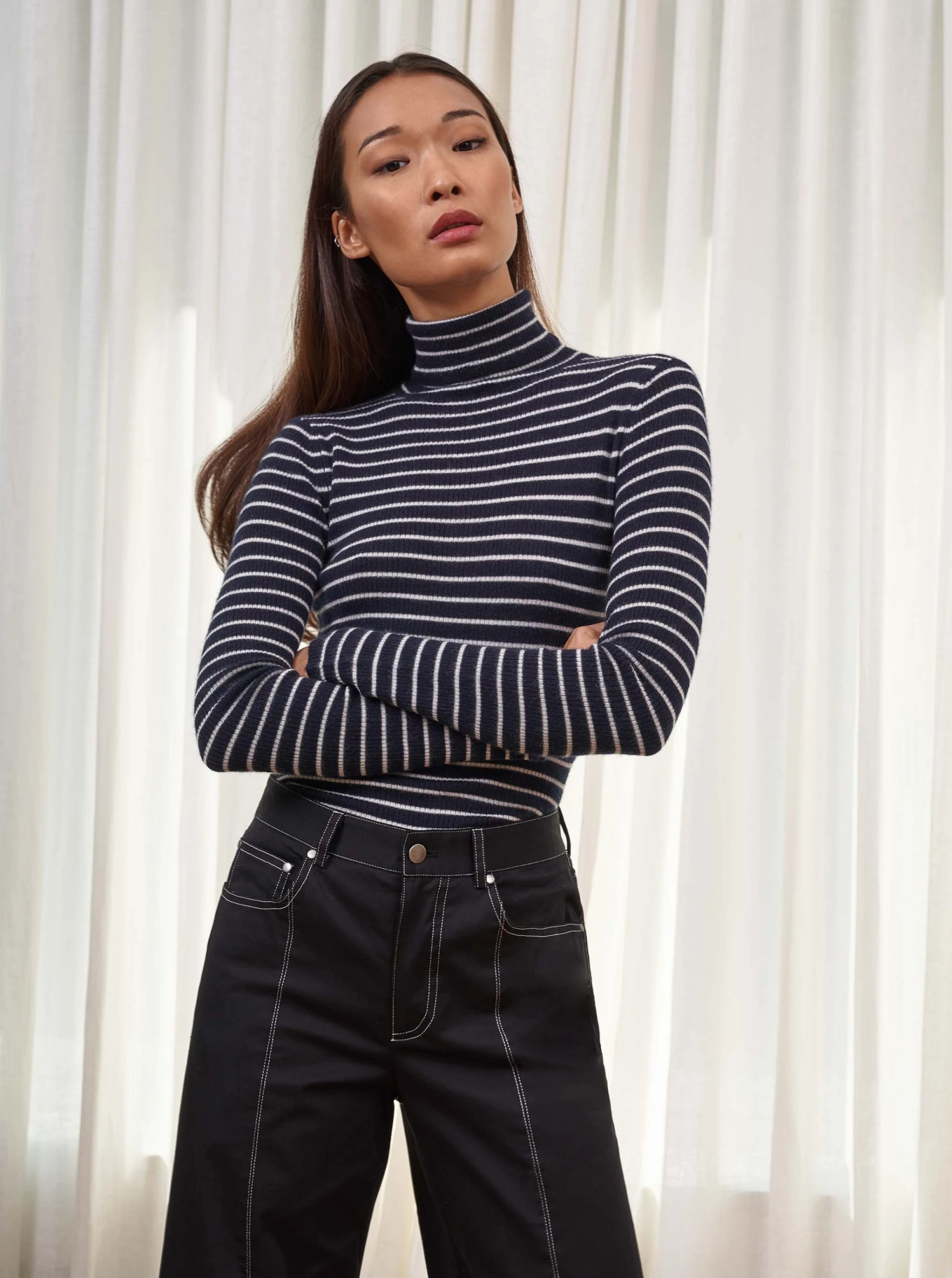 LLC21359_NAVY/CREAM Fine Line Turtleneck