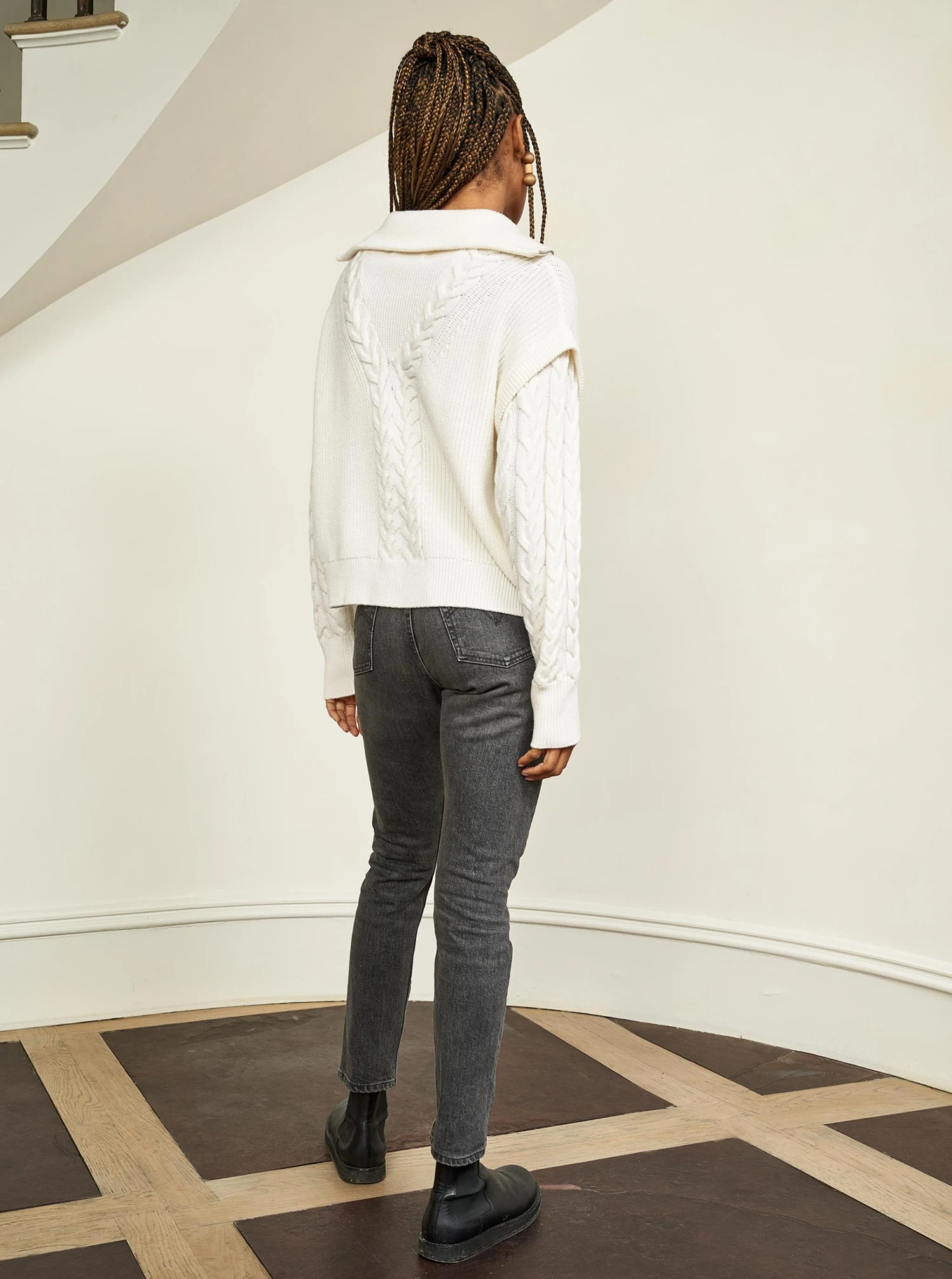 Our Cable Bastien Sweater is the newest closet staple where function meets fabulous in delicious merino fashioned from a borrowed-from-the-boys silhouette.