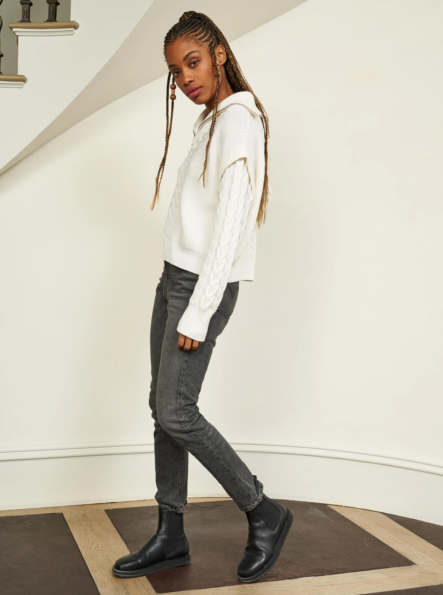LLC21517_CREAM Knitwear Cable Bastien Sweater