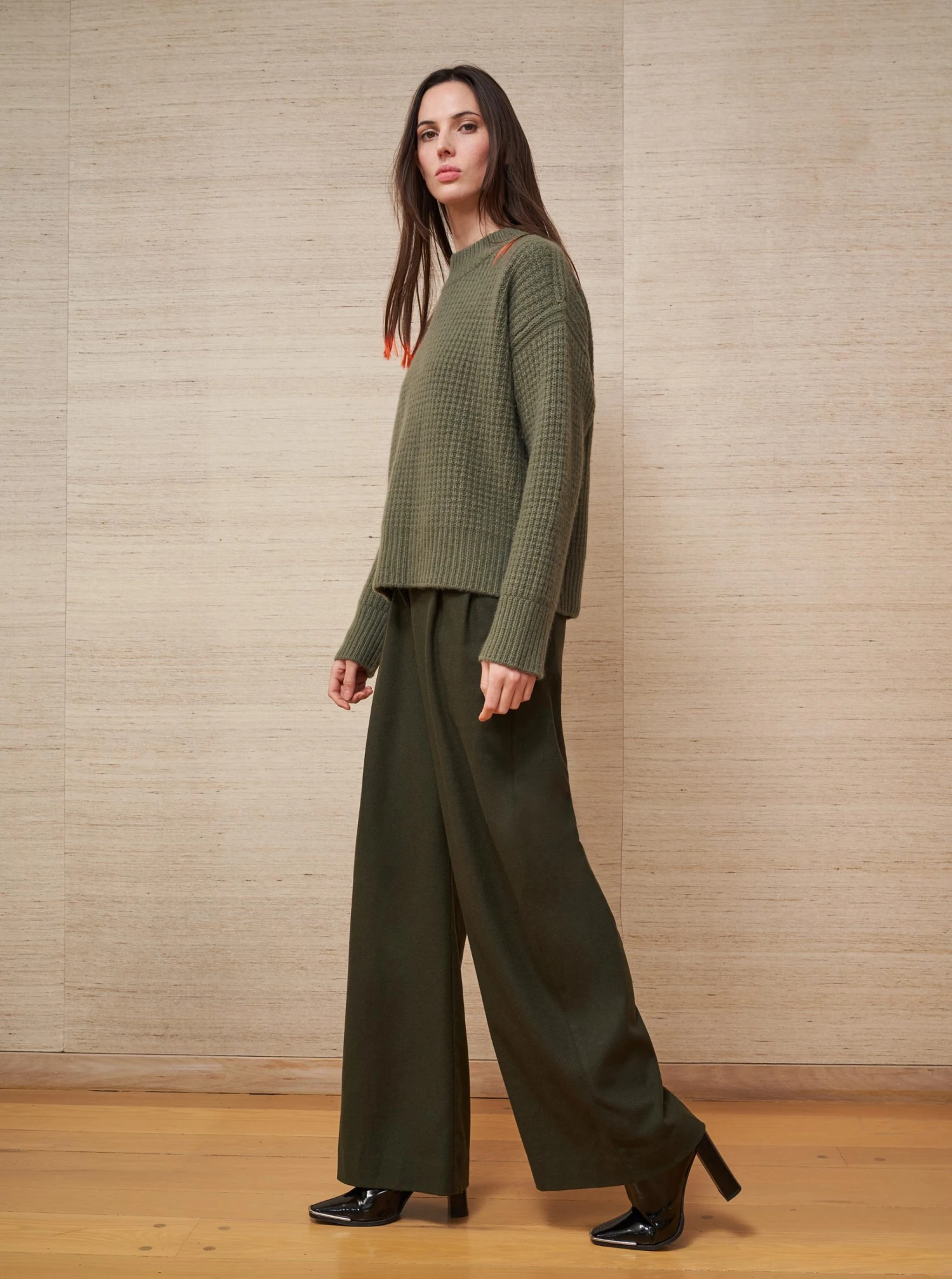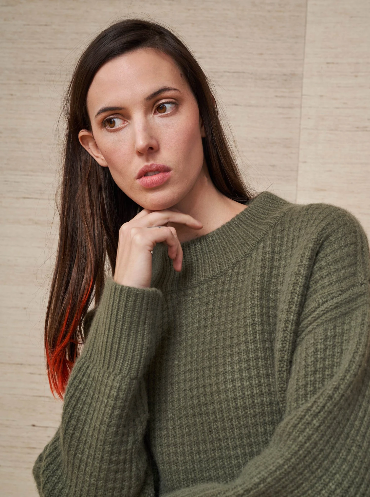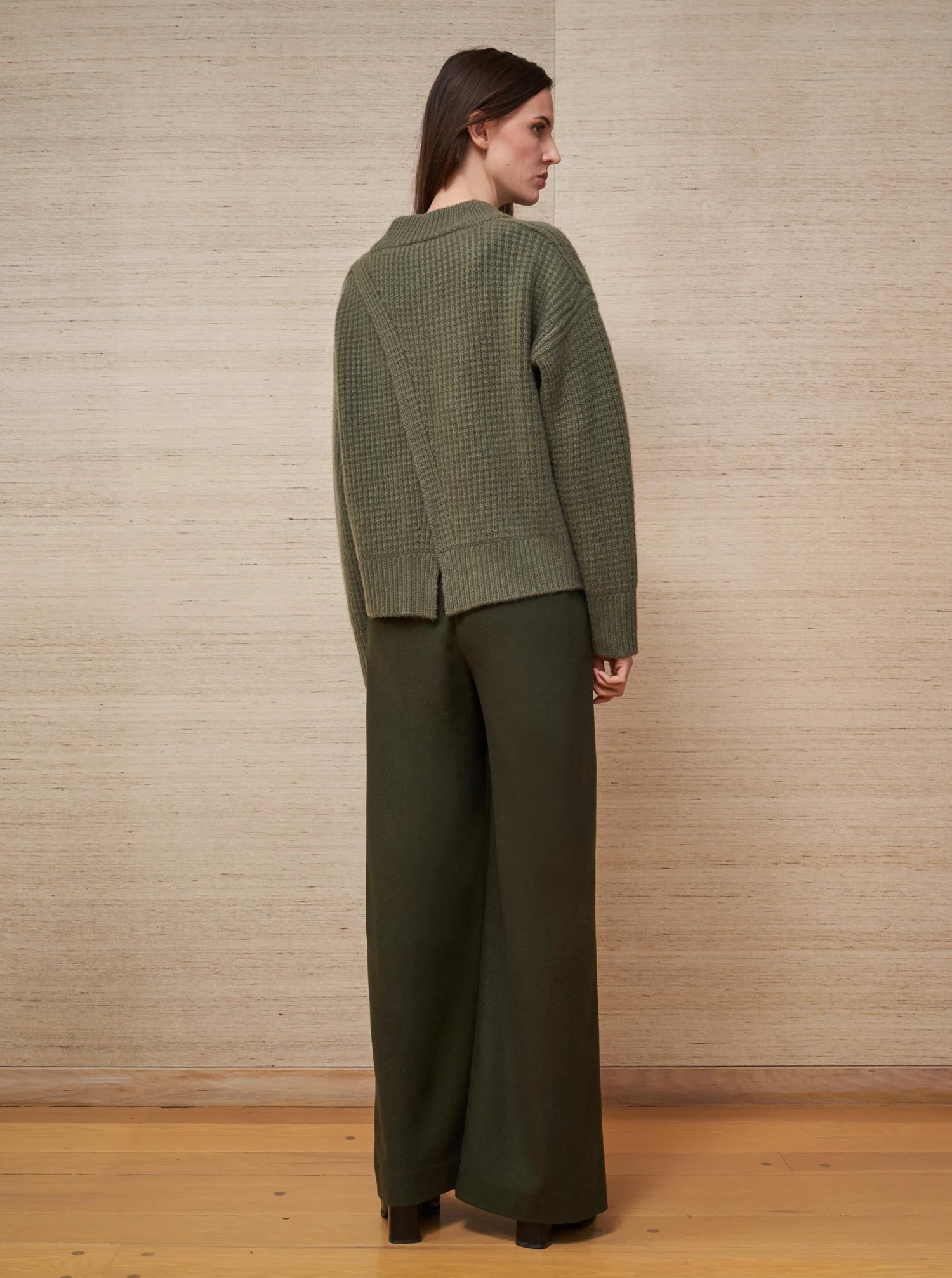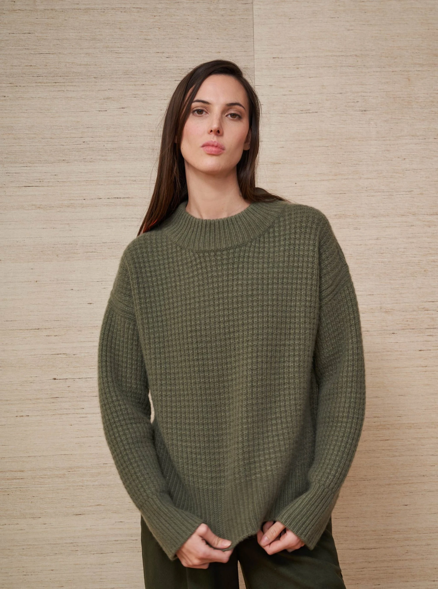 This perfectly oversized, deluxe cashmere Waffle Sweater will make you wonder if ever want the weather to warm up. The overlap back detail makes it the perfect topper for a tonal or contrast base layer like our signature Waffle Henleys.