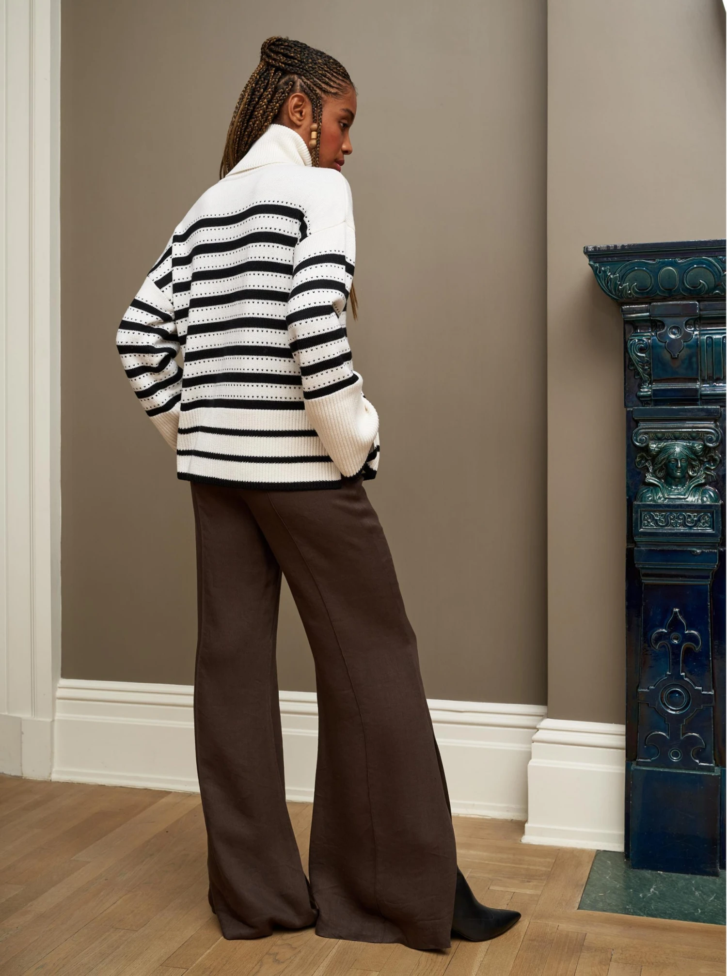 Is there anything better than the perfect oversized, throw-over-anything sweater? We think not. Introducing our Shadow Stripe Turtleneck in our signature, superiorly soft merino wool in classic cream and black. Looking chic and feeling cozy, check check!