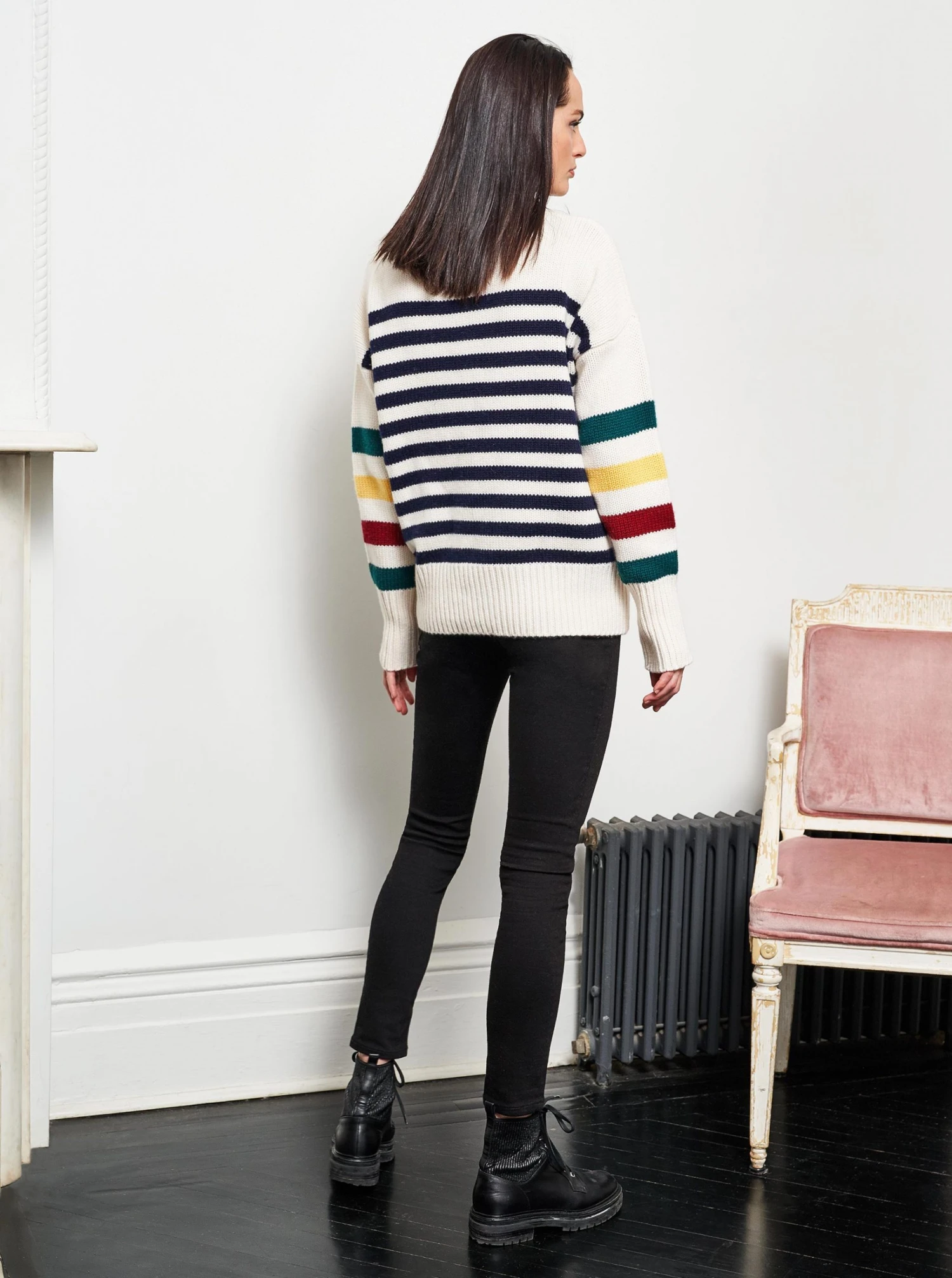 Get on board with our multi-color, 7-ply wool-cashmere sweater. Comfort and style, not mutually exclusive.