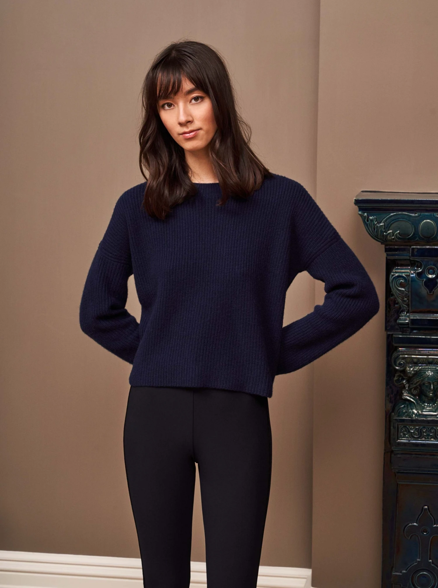 This is it. This is your everyday, never-without, take-with-you-everywhere sweater that will always have your back. Deliciously ribbed cashmere in a loose crewneck and slightly cropped silhouette means you need one in every color for tous les jours.