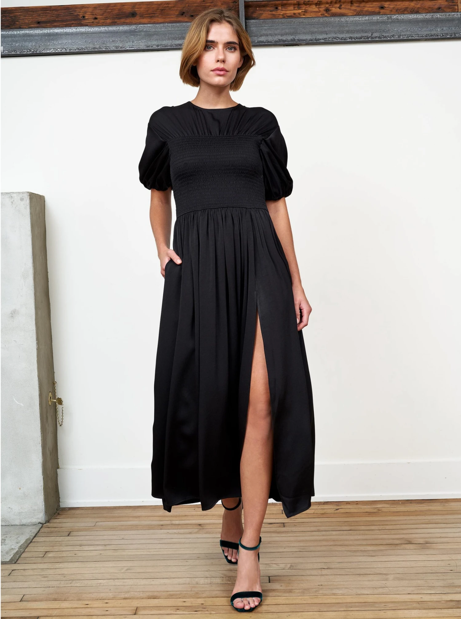 Based off our best-selling smocked summer dresses, the Blanca Dress is that perfect transitional option with a waist-accentuating smocked bodice, fluid tulip skirt with slit and elasticated puff sleeves because why should summer have all the fun?