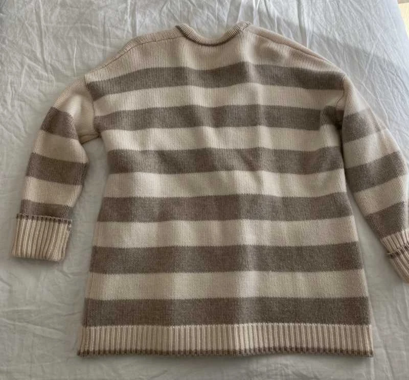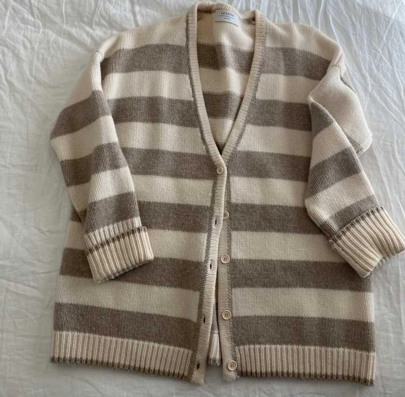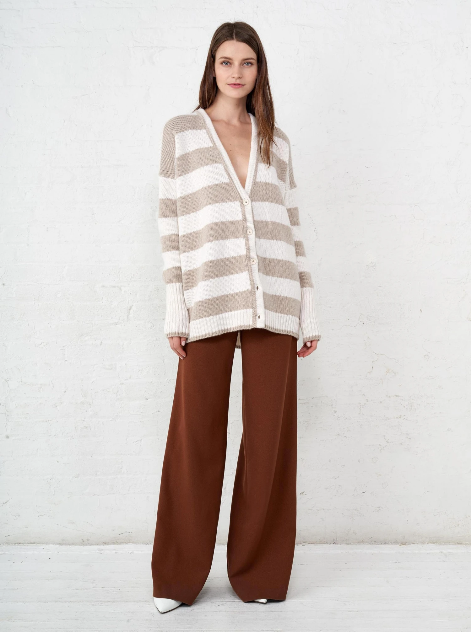 Inspired by La Ligne muse and model, Martha Hunt, this chunky wool cashmere cardigan is the perfect piece to curl up by the fire with or take out on the town. Super soft in cream and beige stripes, channel your inner Martha with this new wardrobe staple.