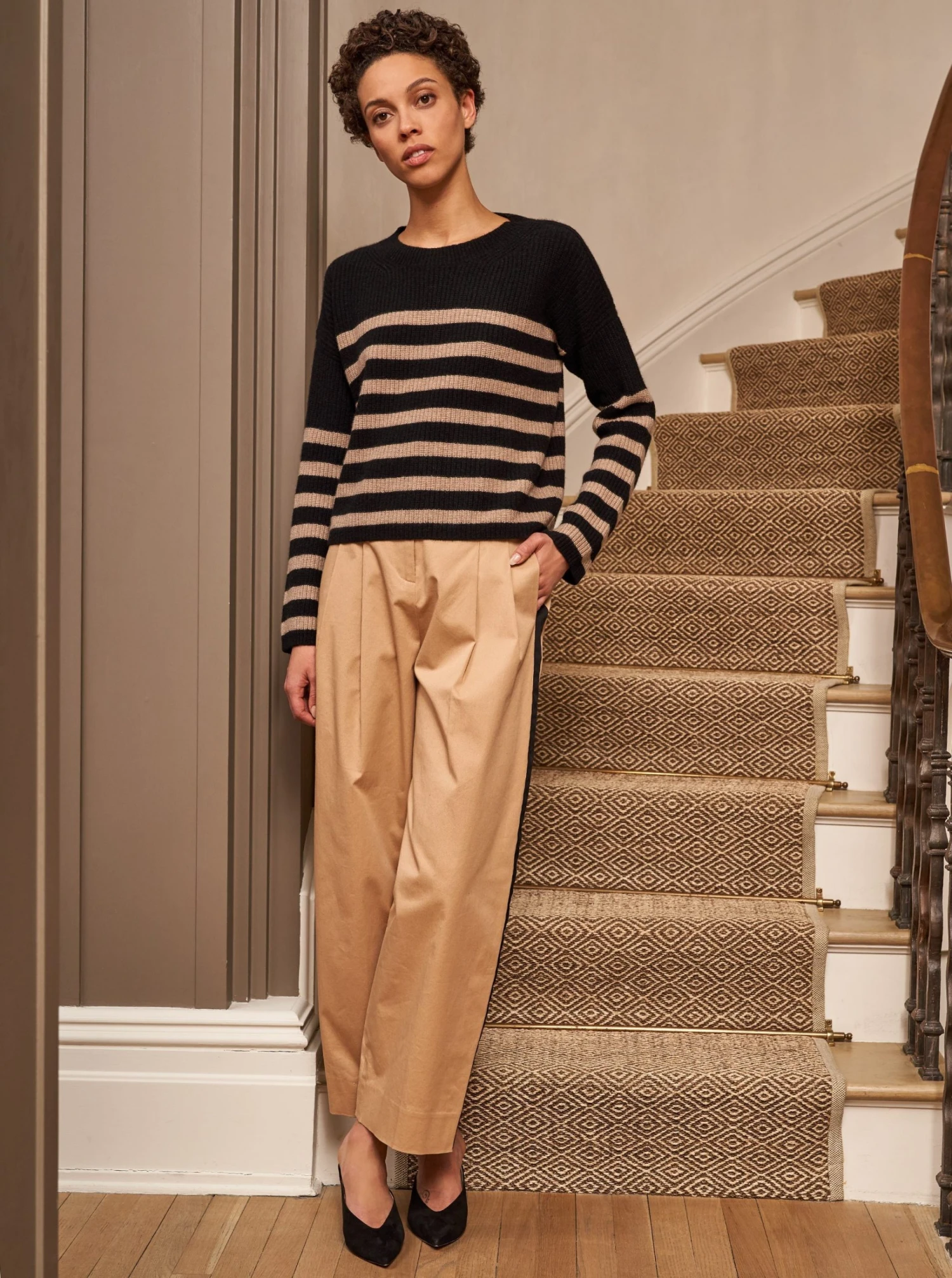 This is it. This is your everyday, never-without, take-with-you-everywhere sweater that will always have your back. Deliciously ribbed cashmere in a loose crewneck and slightly cropped silhouette means you need one in every color for tous les jours.